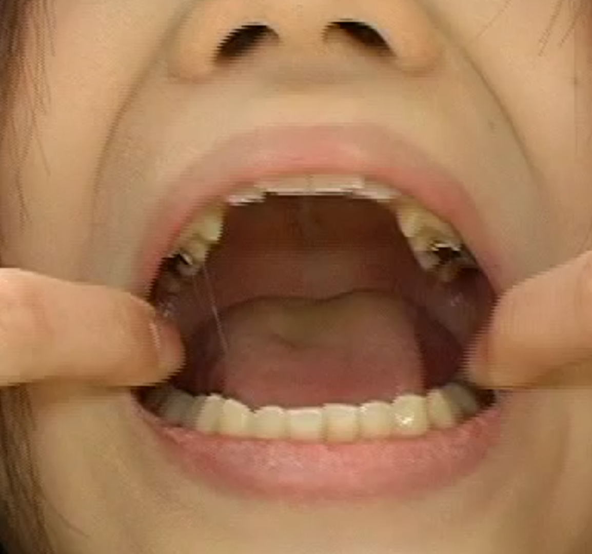 このフェチ作品では歯磨きがメインとなっています。下の歯にはインレーが3本あり、非常に美しく見えます。作品は見つけにくいですが、歯フェチの方には是非購入して見ていただきたい作品です。